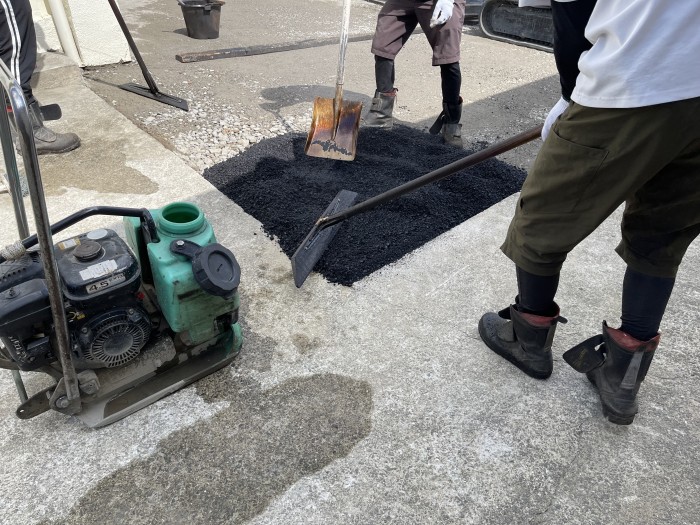 本日も引き続きアスファルト舗装不陸調整、アスファルト上層舗装作業して完了致しました。