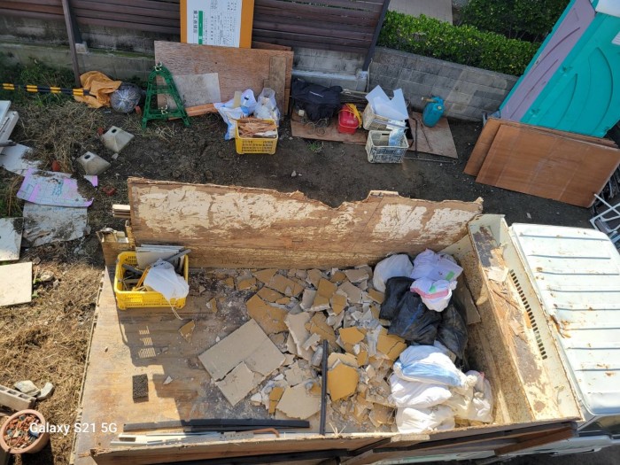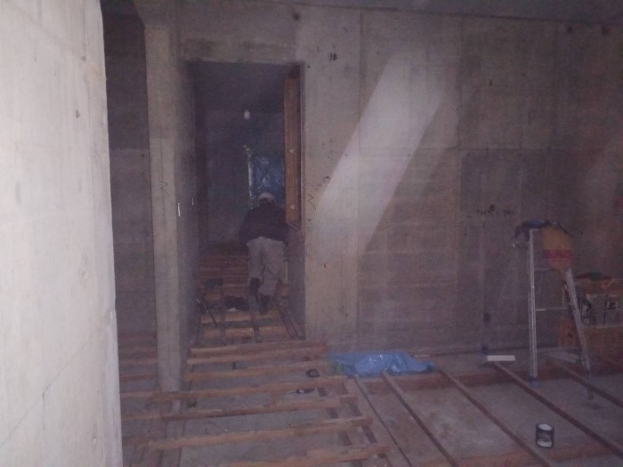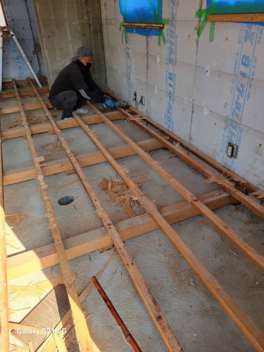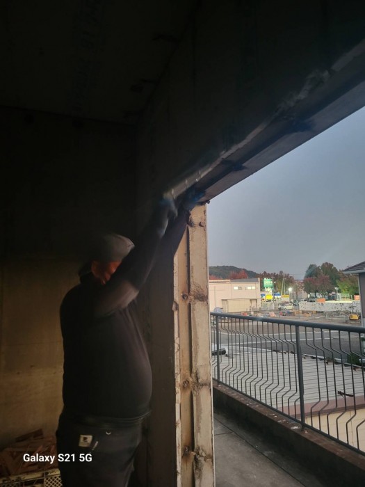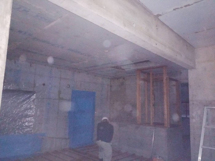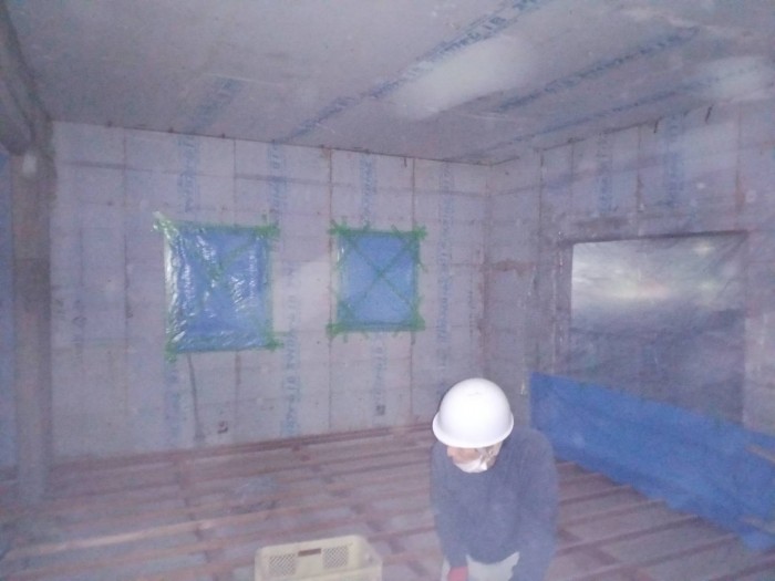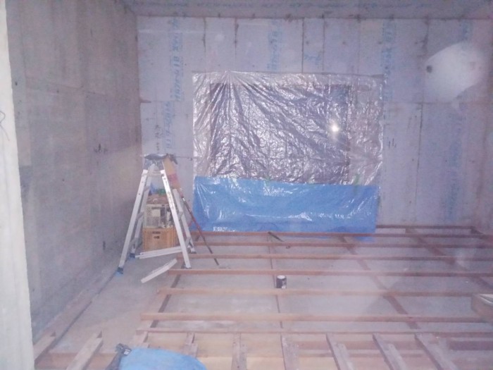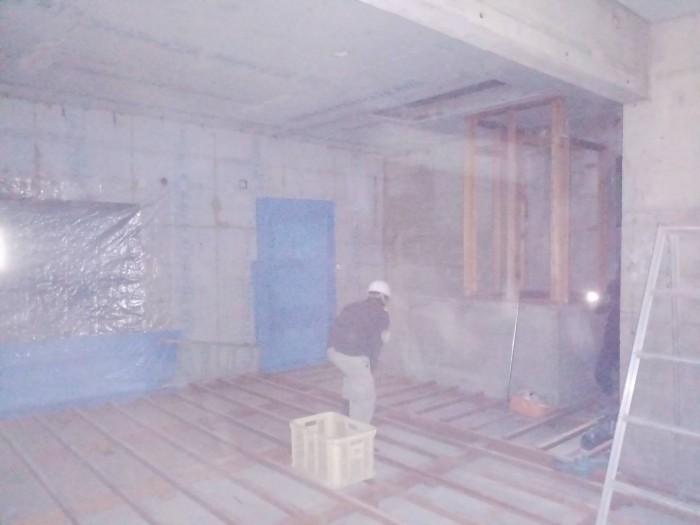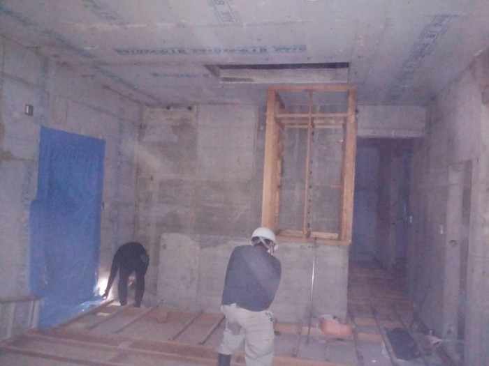 2F部解体スケルトン作業設計指示通り完了して1階部解体作業開始します。窓部養生作業しております。