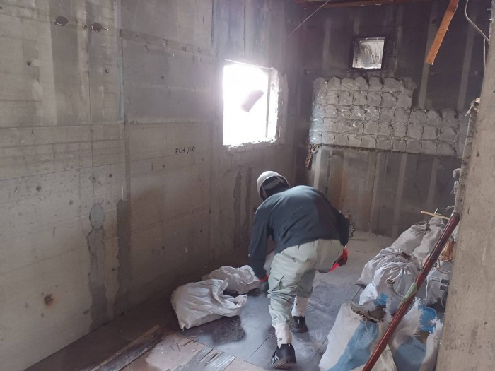 本日も引き続き内装解体撤去作業、廃材仕業積み込み搬出作業しております。