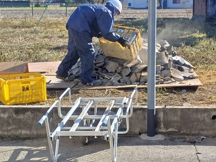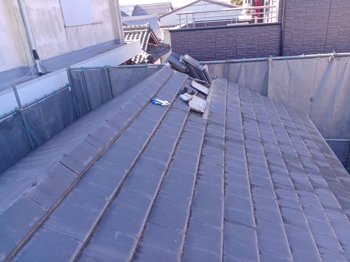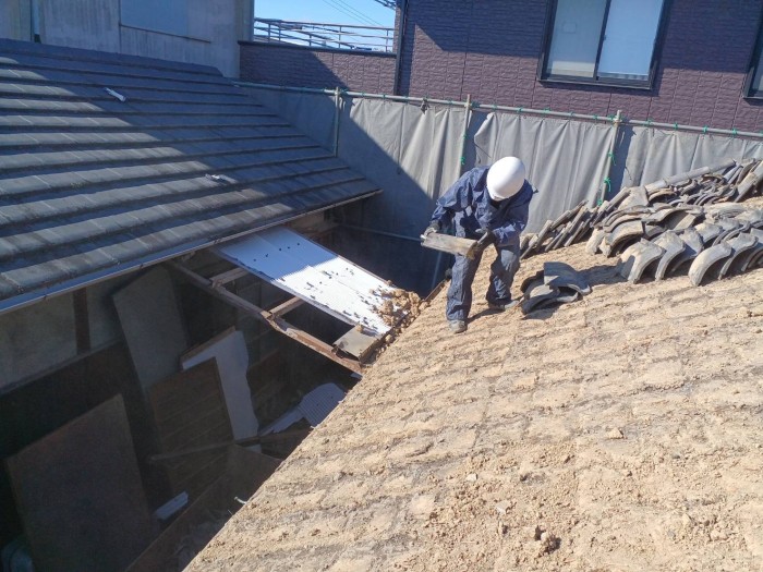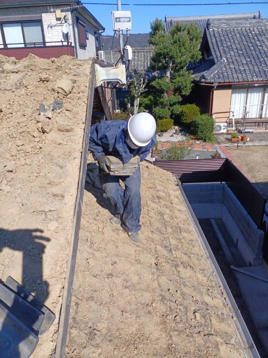 本日も引き続き瓦撤去、取り置きヤードへ搬出作業しております。