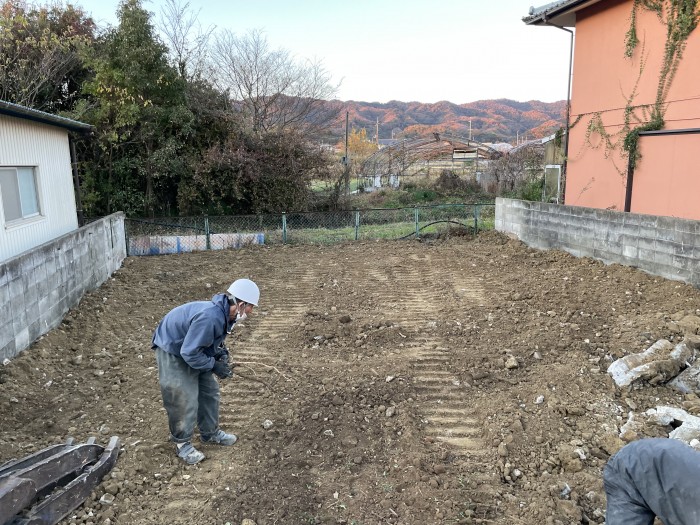 本日も引き続き基礎ガラ、土間ガラ撤去搬出作業しております。