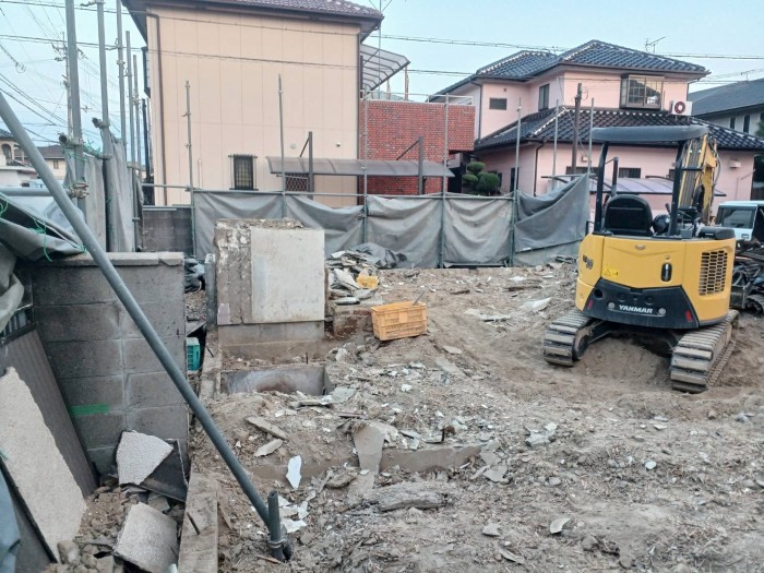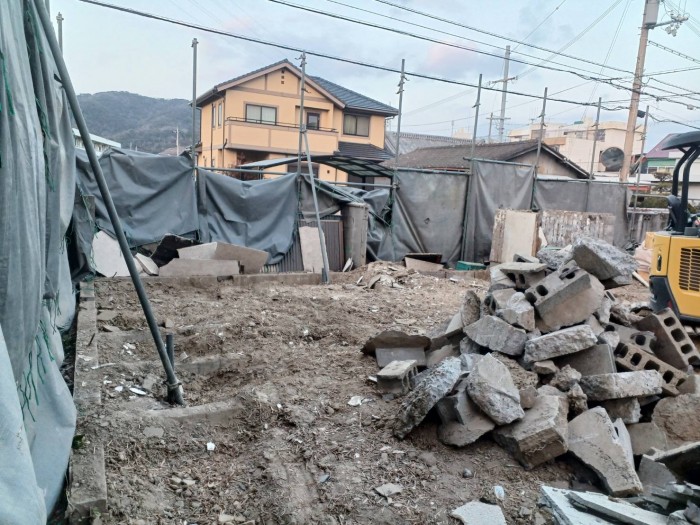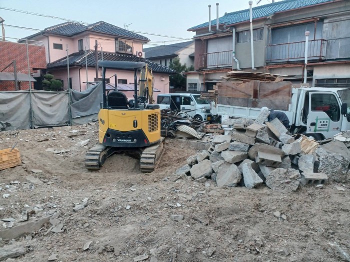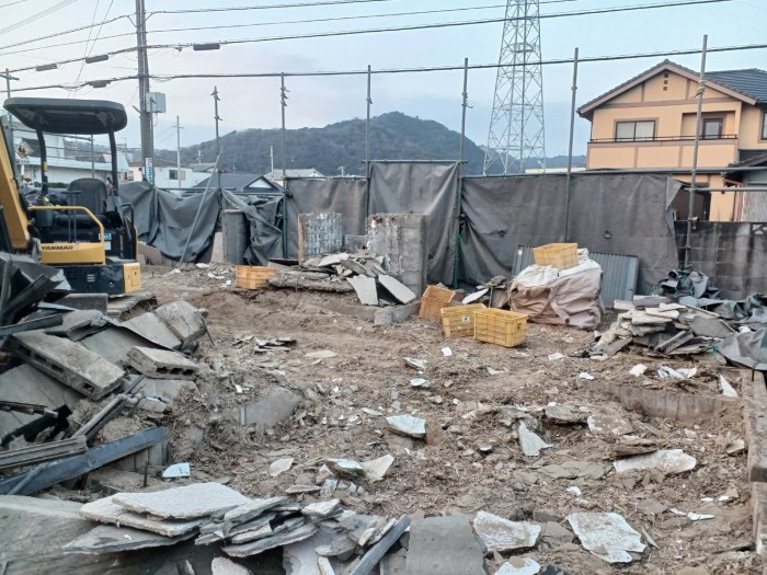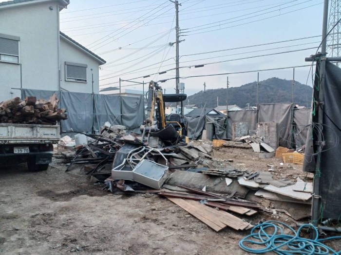 建物解体撤去完了して、廃木材仕分け積み込み搬出作業しております。明日から基礎撤去搬出作業する予定です。