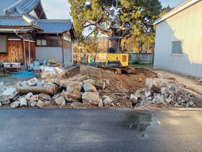 昨日の作業状況です。ご指定いただいた基礎撤去完了して便槽撤去完了して場内試掘完了、敷地土敷き均し整地、砕石搬入敷き均し重機転圧完了致しました。 2026年3月28日(土) 11:32 | カテゴリー:施工実績,解体撤去工事,解体撤去工事