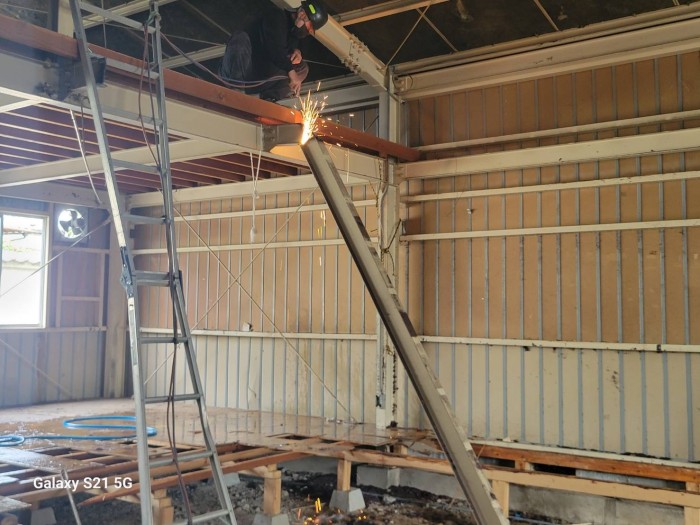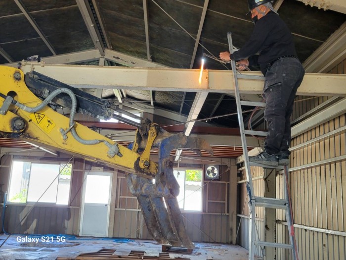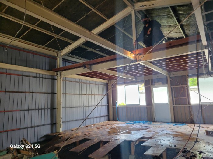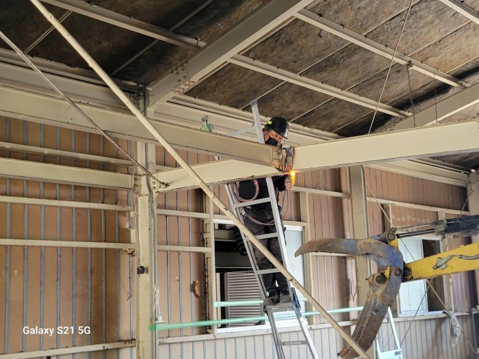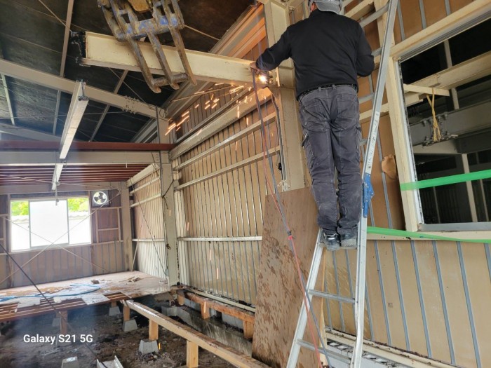 本日も引き続き内部解体撤去作業しております。 床、2F部木材撤去搬出作業完了して、トイレ、鉄骨梁切断解体撤去作業しております。 2026年4月14日(火) 19:46 | カテゴリー:施工実績,解体撤去工事,解体撤去工事