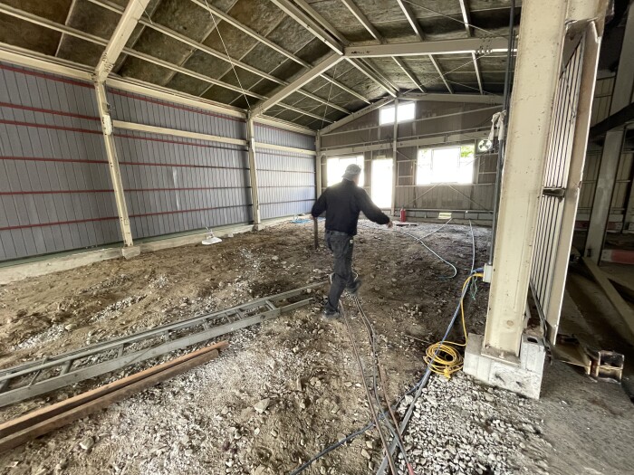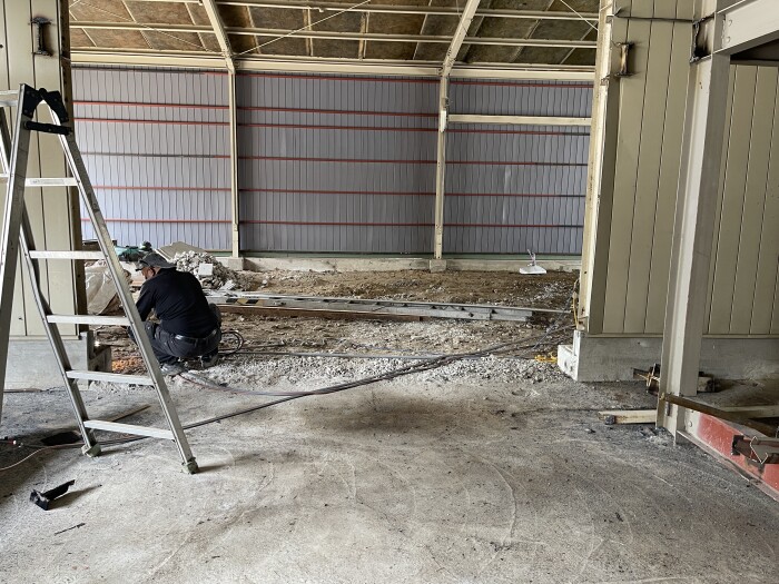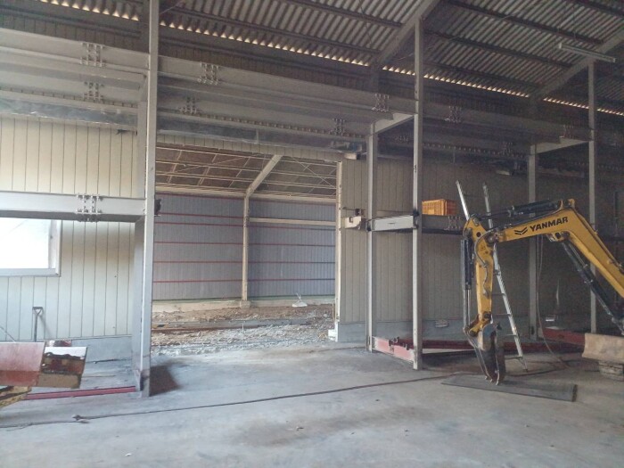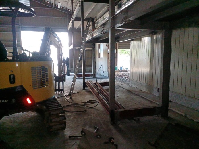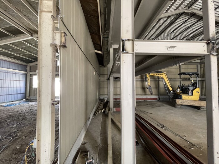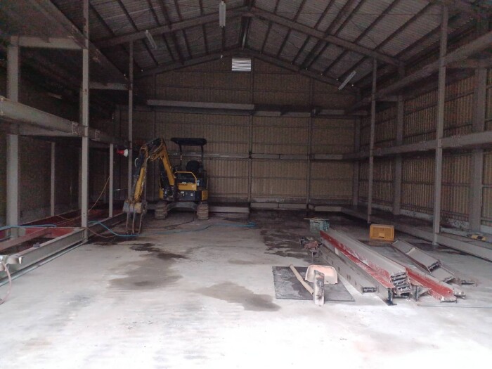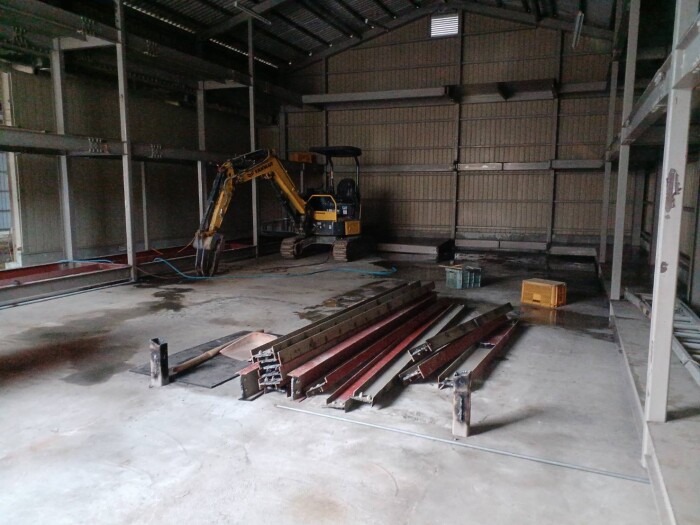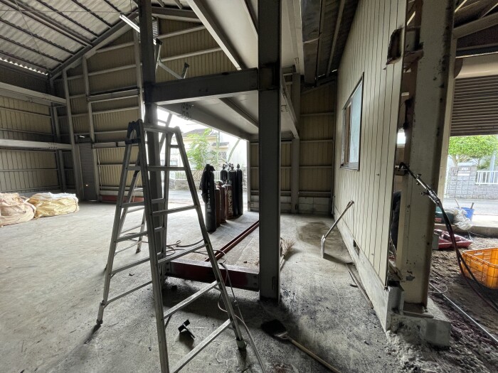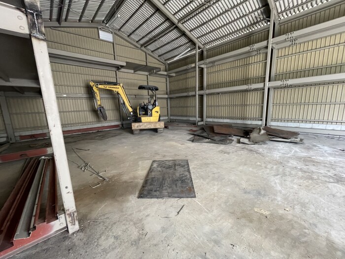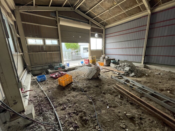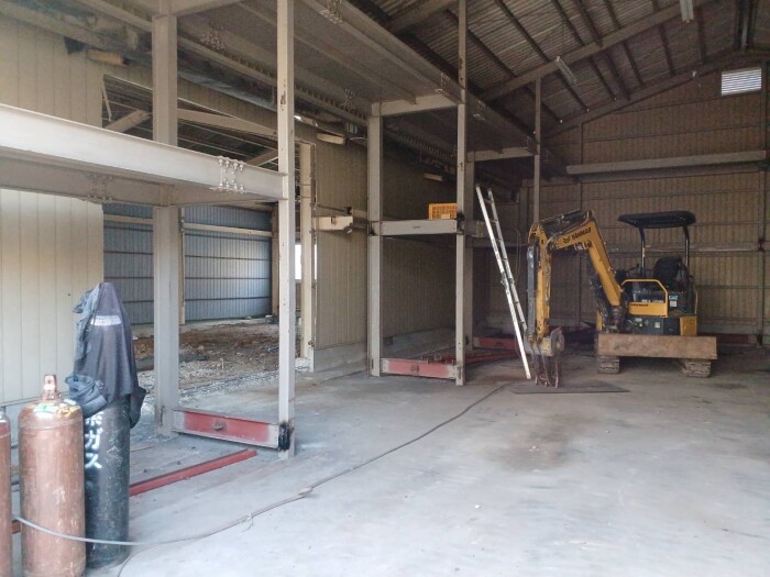 本日撤去工事完了致しました。 鉄骨切断、撤退、処分、コンクリートガラ撤退、水道配管移設、雨樋補修等作業全項目完了致しました。 明日より路盤工事、シャッター取り付け工事作業予定しております。 2026年4月27日(月) 18:45 | カテゴリー:室内リノベーション工事,施工実績,解体撤去工事,解体撤去工事