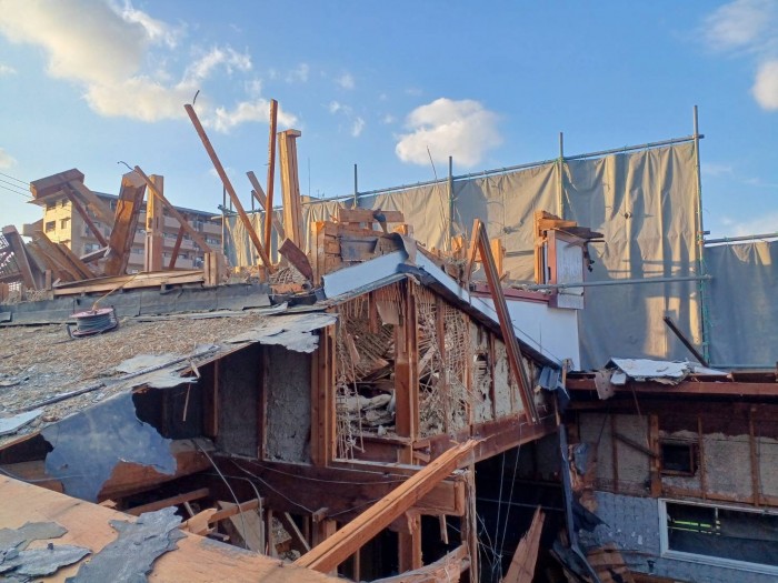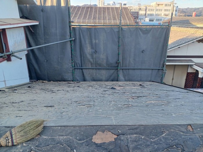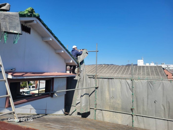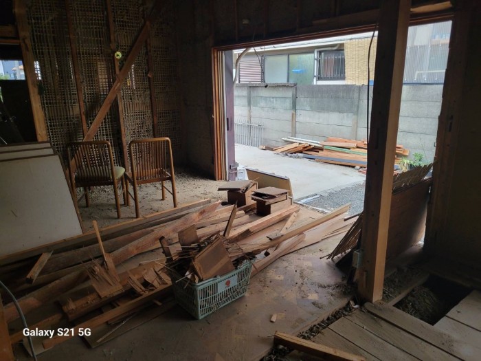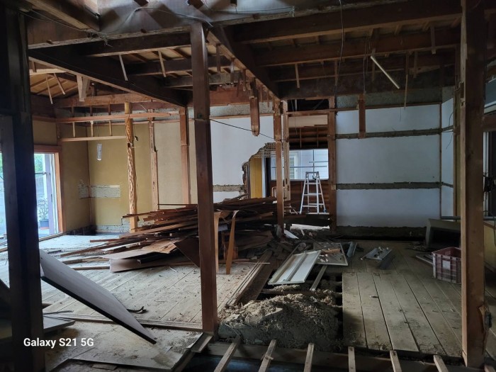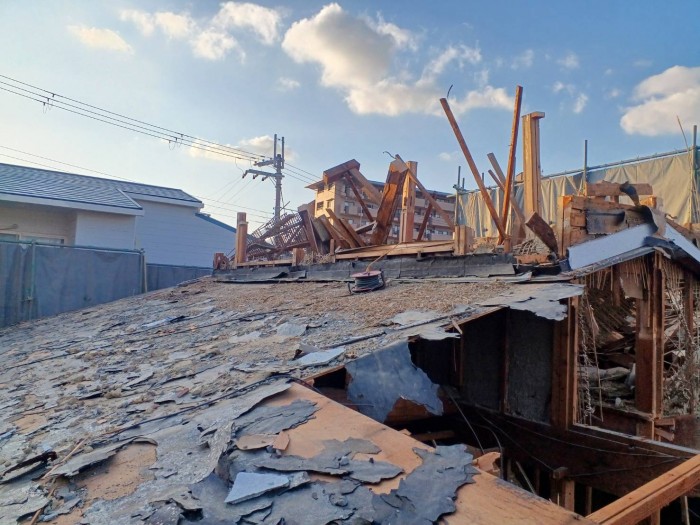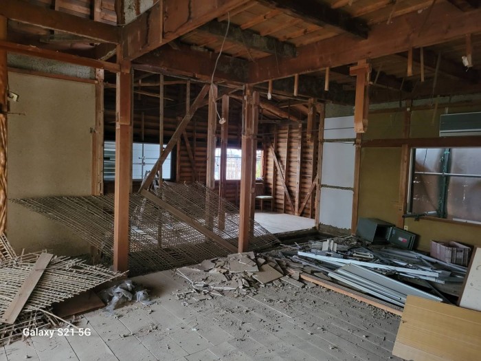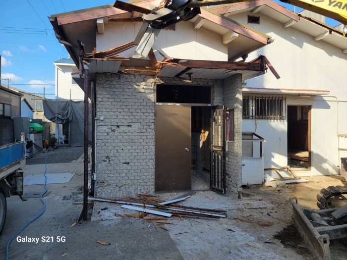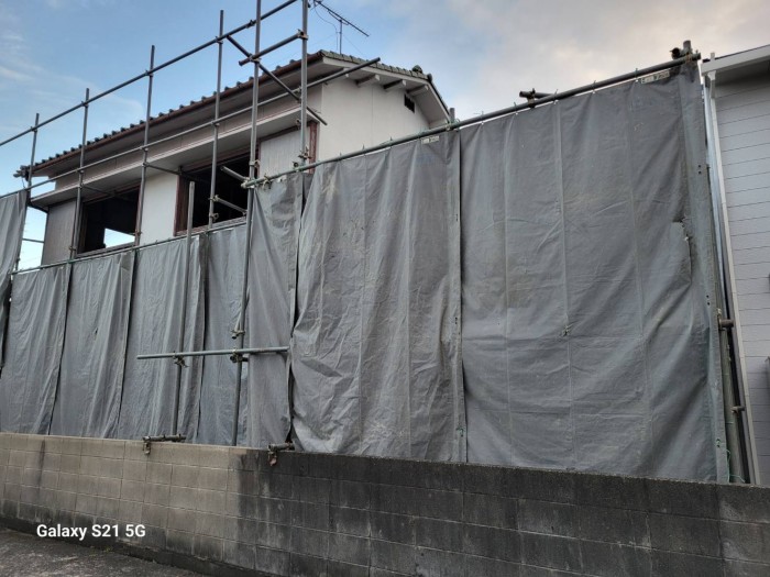 和歌山市四箇郷地域木造2階増築建解体撤去工事 本日足場養生シート張り、タイル削り撤去搬出作業して、内部解体撤去作業しております。 2026年2月14日(土) 19:13 | カテゴリー:施工実績,解体撤去工事,解体撤去工事