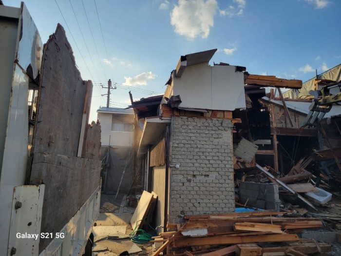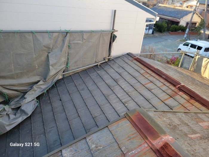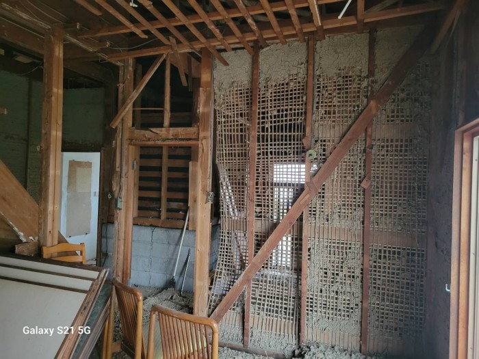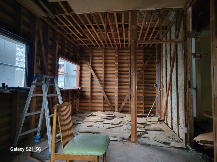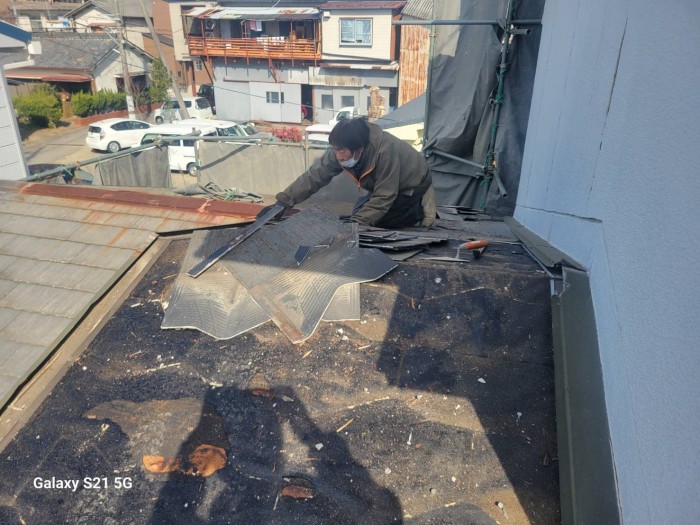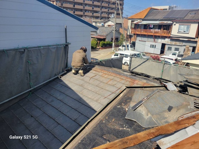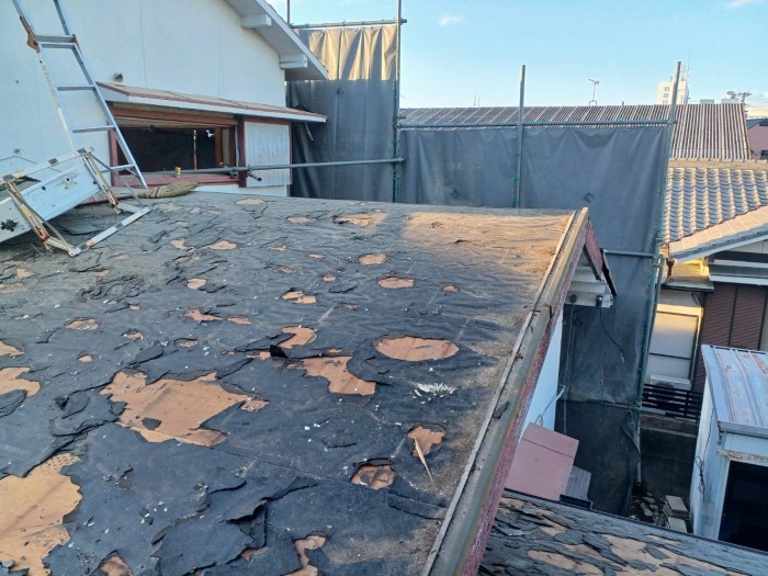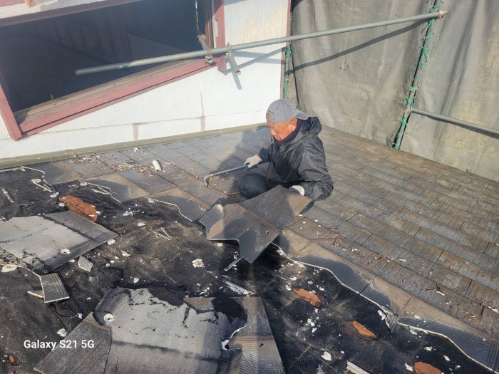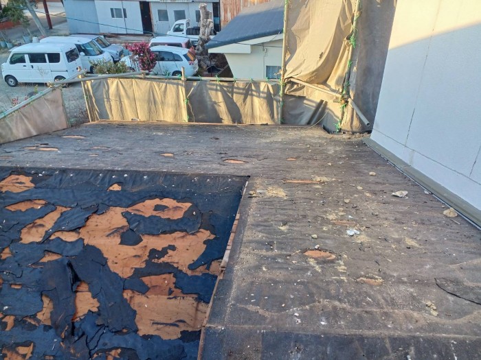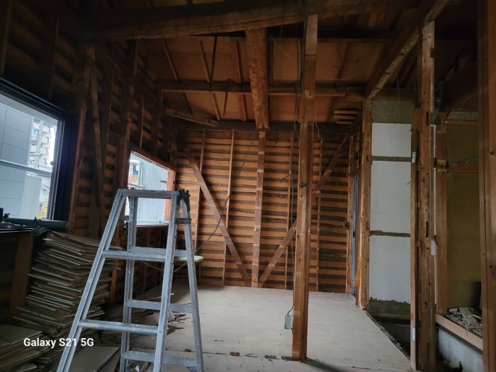 和歌山市四箇郷地域木造2階増築建解体撤去工事 本日足場養生シート張り、タイル削り撤去搬出作業して、内部解体撤去作業しております。 2026年2月14日(土) 19:13 | カテゴリー:施工実績,解体撤去工事,解体撤去工事