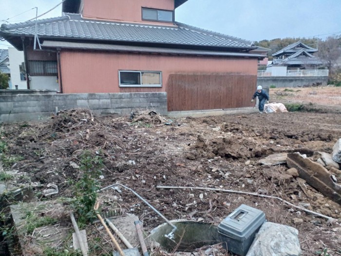 和歌山市善明寺地内木造平屋増築建解体撤去工事 本日コンクリートガラ撤去搬出して井戸撤去砕石埋め戻し、解体ヤード均し作業して工事完了致しました。 施主様に確認頂き完了致しました。 2026年2月17日(火) 18:43 | カテゴリー:施工実績,解体撤去工事,解体撤去工事