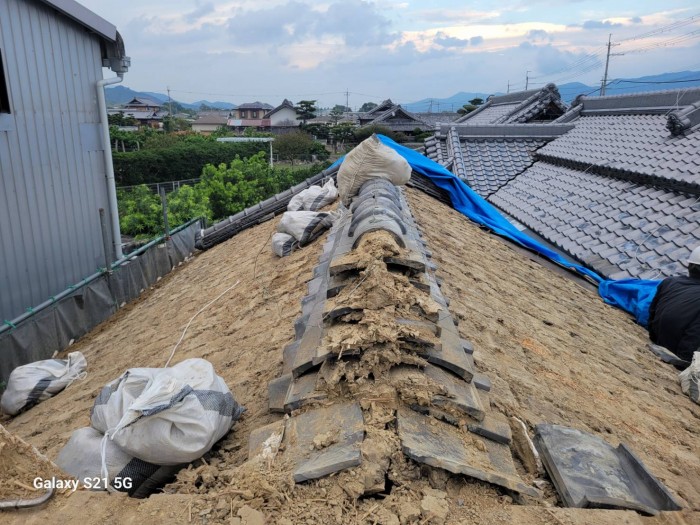 和歌山県紀の川市北勢田地内リフォーム改修工事 本日も引き続き平屋建て部瓦、屋根土、野地板等解体撤去作業、搬出作業しております。 2025年10月17日(金) 19:06 | カテゴリー:外構工事(新設、リノベーション工事),施工実績,解体撤去工事,解体撤去工事