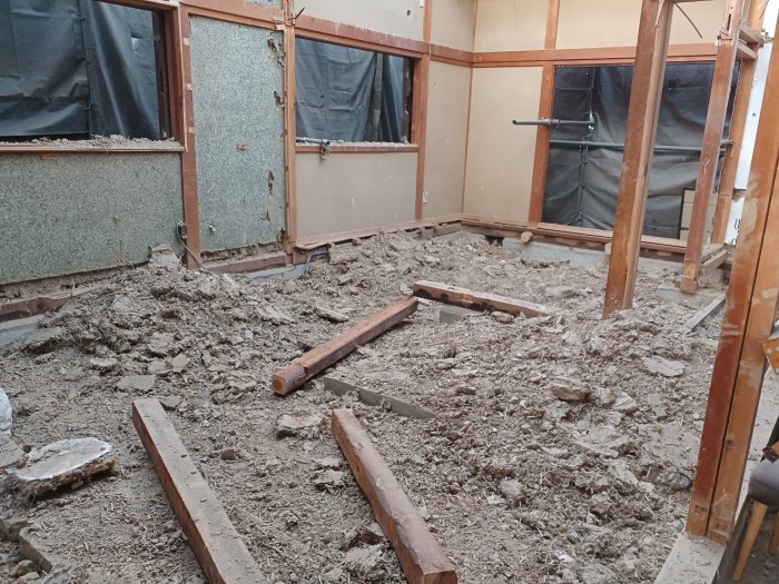 和歌山県紀の川市北勢田地内リフォーム改修工事 本日も引き続き壁土撤去搬出、基礎破砕撤去、搬出、水路土撤去作業しております。 2025年10月23日(木) 22:29 | カテゴリー:外構工事(新設、リノベーション工事),施工実績,解体撤去工事,解体撤去工事