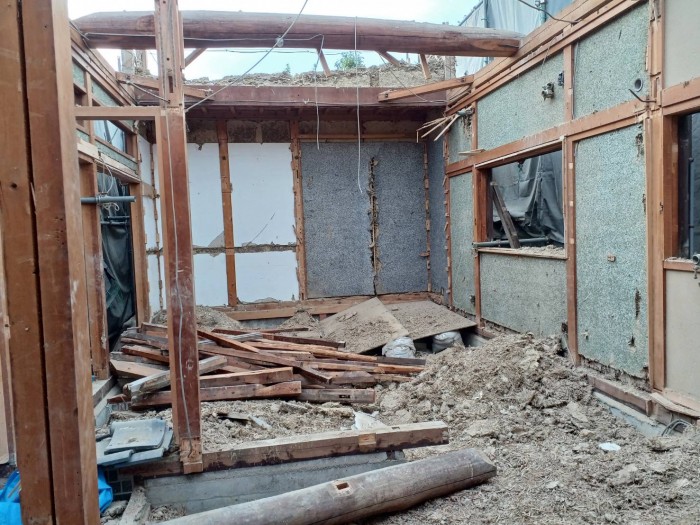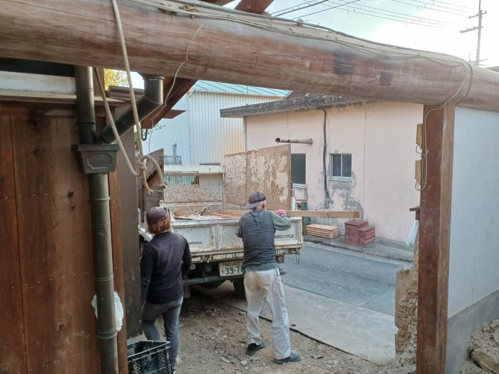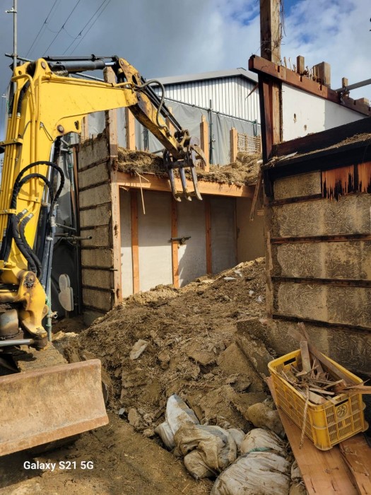 和歌山県紀の川市北勢田地内リフォーム改修工事 本日も引き続き壁土撤去搬出作業しております。 有機物撤去作業しております。 2025年10月22日(水) 19:40 | カテゴリー:外構工事(新設、リノベーション工事),施工実績,解体撤去工事,解体撤去工事