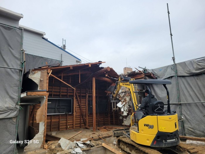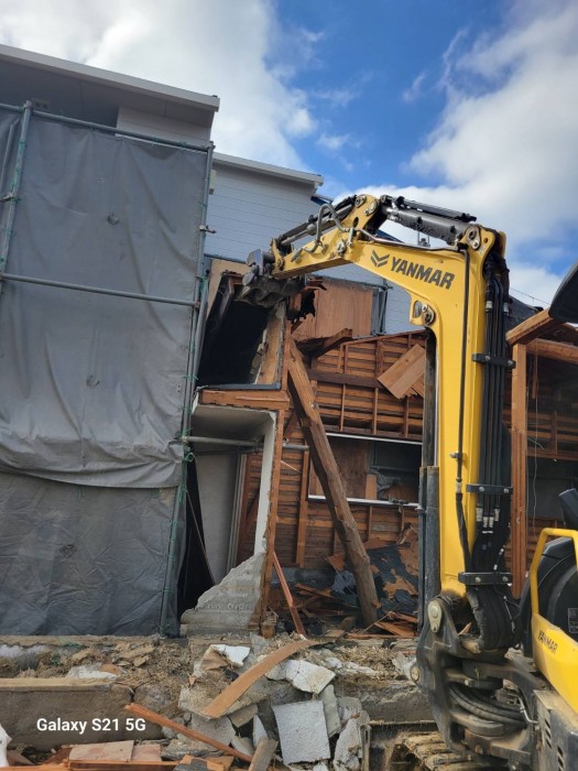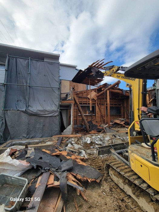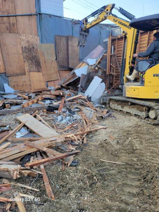 和歌山市四箇郷地域木造2階増築建解体撤去工事 引き続き解体撤去仕分け搬出作業しております。 2階部分解体しております。 2026年2月21日(土) 10:35 | カテゴリー:施工実績,解体撤去工事,解体撤去工事